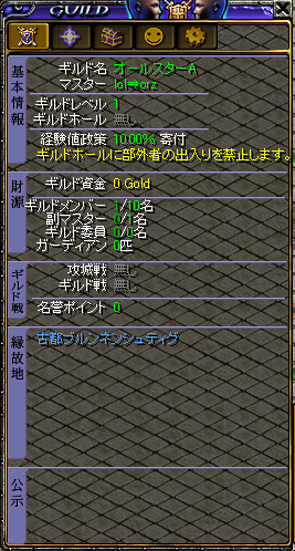 ギルド作成初期の段階では(ギルドLv上がらない段階)